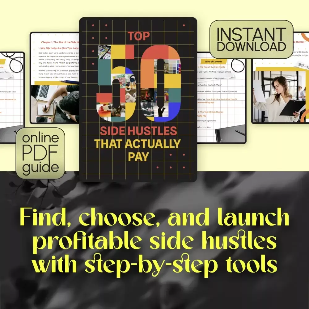 Top 50 Side Hustles That Actually Pay | Digital Download PDF eBook | Side Hustle Ideas That Make Money | Gig Economy & Passive Income